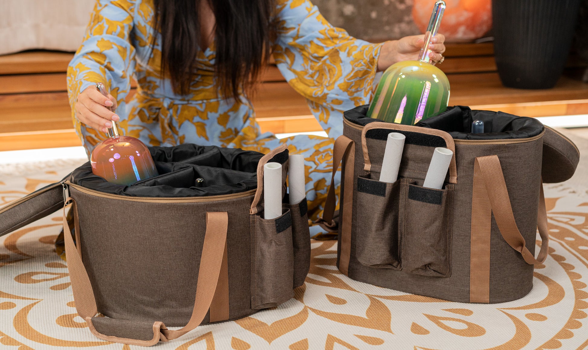 Complete set: comes with 2 carrying bags and 4 suede mallets.