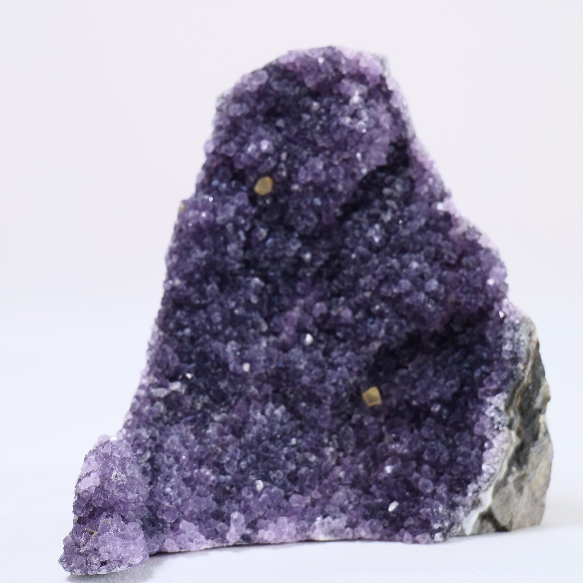 This polished amethyst geode comes from Uruguay, a region known for producing some of the deepest and most richly coloured amethyst in the world. Formed inside volcanic rock cavities, amethyst crystals grow over thousands of years as mineral-rich solutions slowly crystallise within hollow stone.